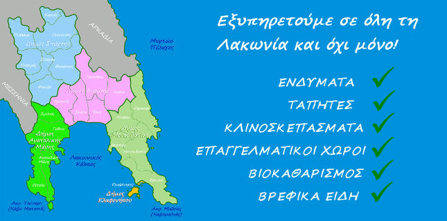 Το στεγνοκαθαριστήριο Laundry Queen δημιουργήθηκε το 2014 με έδρα την Νεάπολη (Βοιών) Λακωνίας με σκοπό να καλύψει τις ανάγκες της περιοχής, της Μονεμβάσιας αλλά και γενικότερα του δήμου Μονεμβασίας στους τομείς του καθαρισμού χαλιών - μοκετών, των υφασμάτινων και δερμάτινων ενδυμάτων, των κουρτινών, των κουβερτών και παπλωμάτων καθώς και τους κατ'οίκον και διερχομένων σκαφών καθαρισμούς επίπλων και στρωμάτων έχοντας την πλήρη υποστήριξη του δικτύου εξειδικευμένων τεχνικών - συμβούλων καθαρισμού, Καθαρομαγεία.